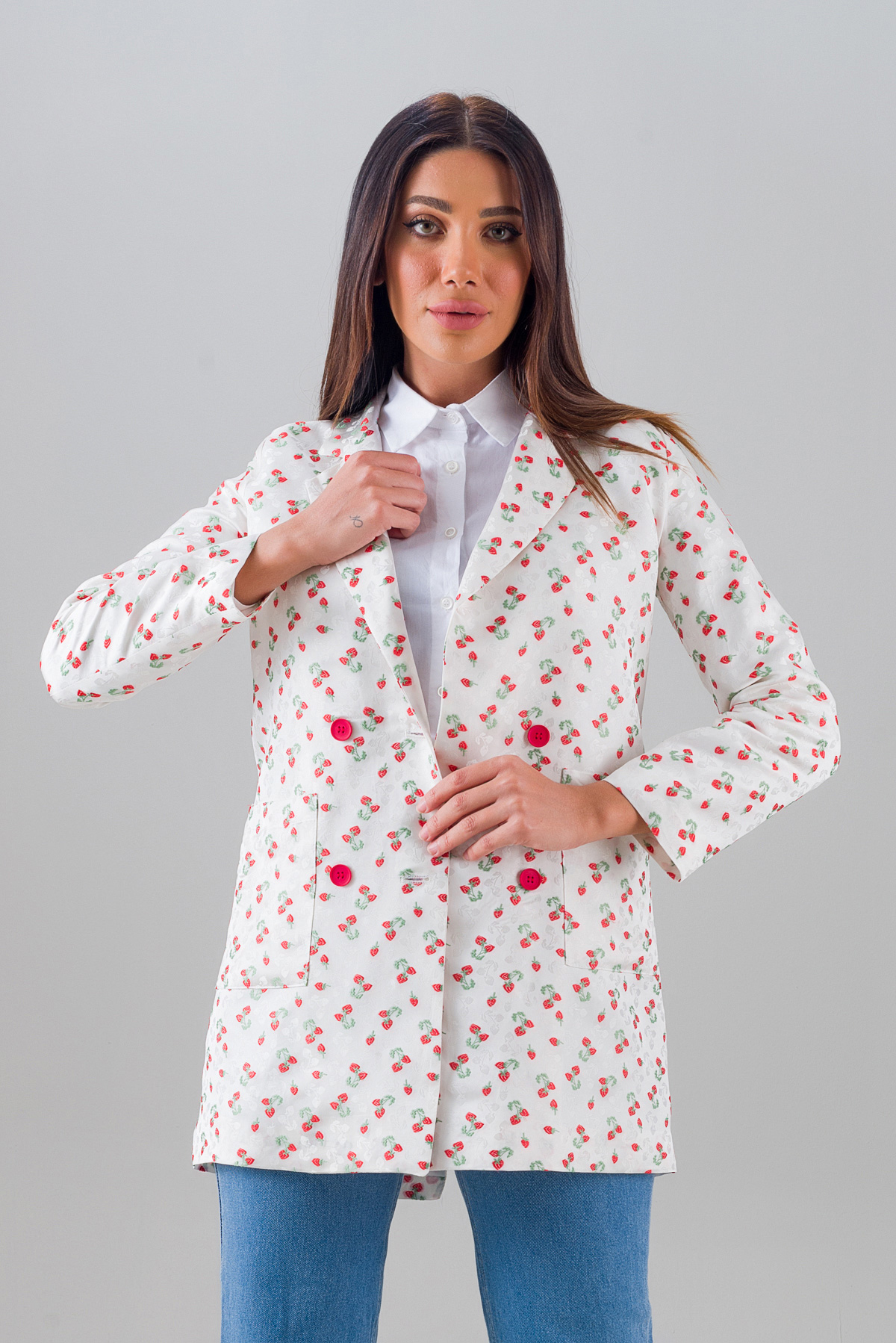 Blazer Ceket Desenli Beyaz 2004
