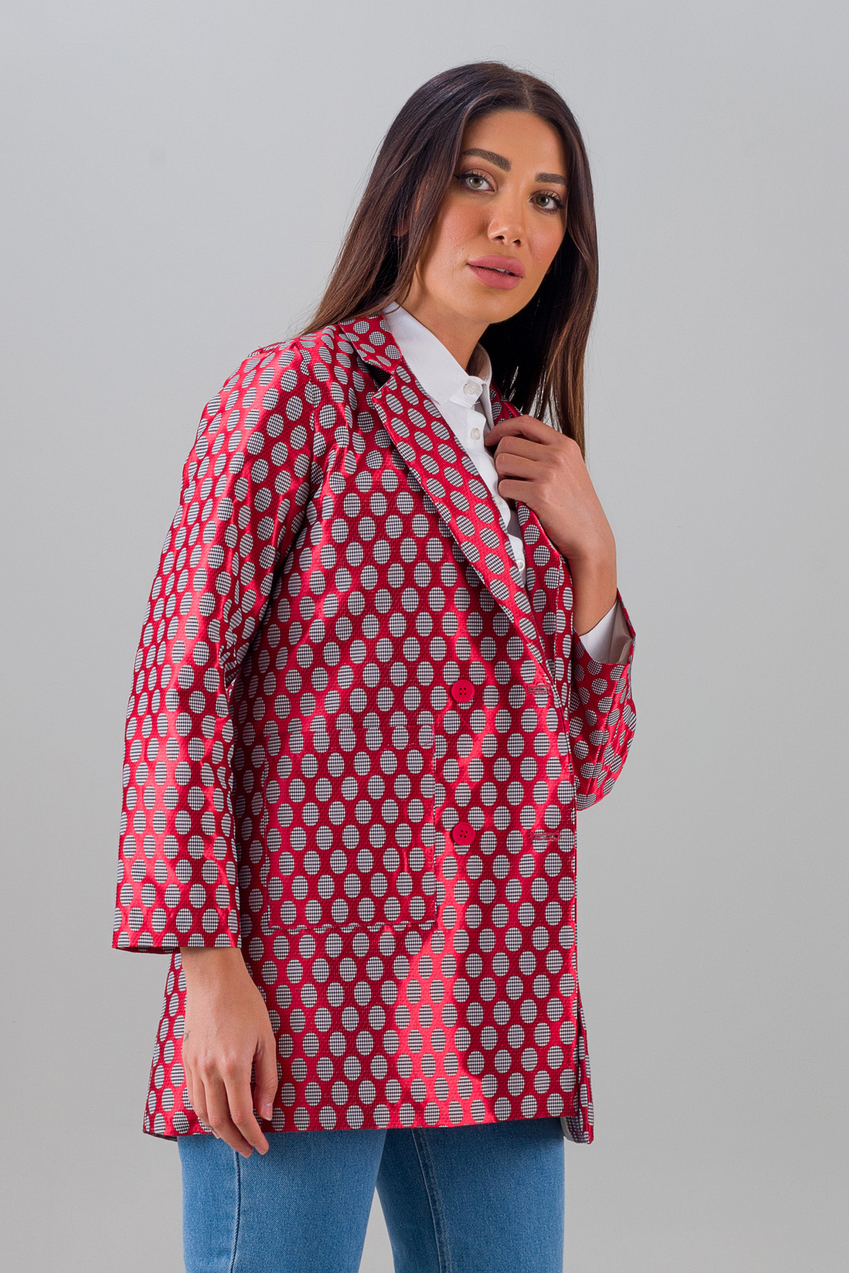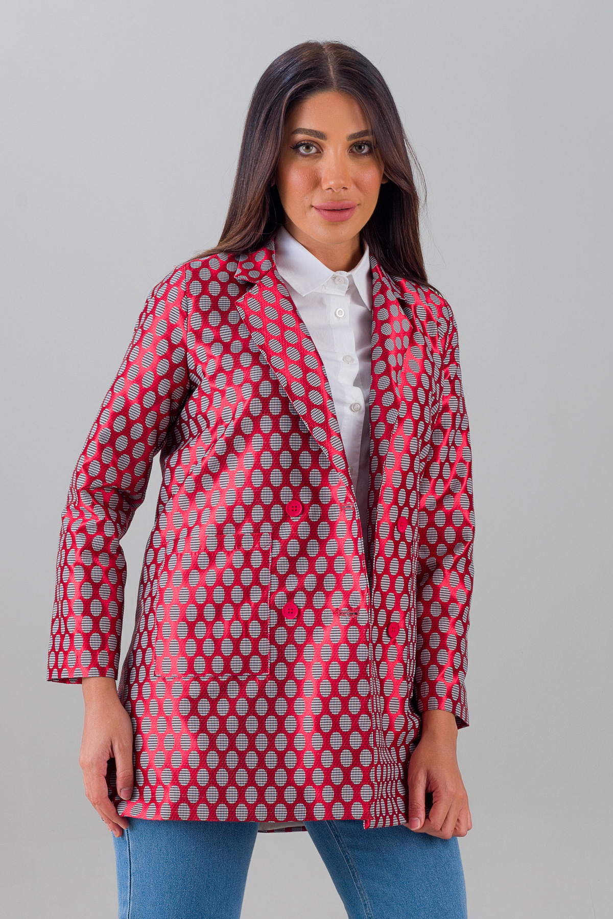 Blazer Ceket Desenli Kırmızı 2002