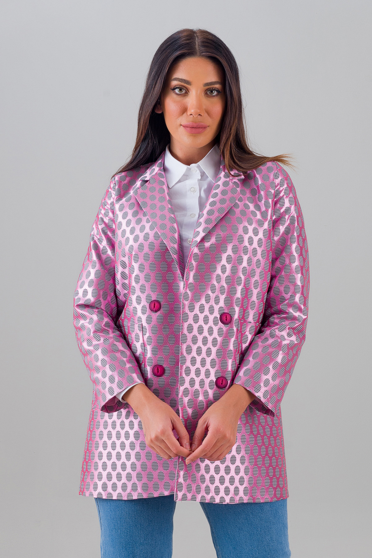 Blazer Ceket Desenli Pembe 2002