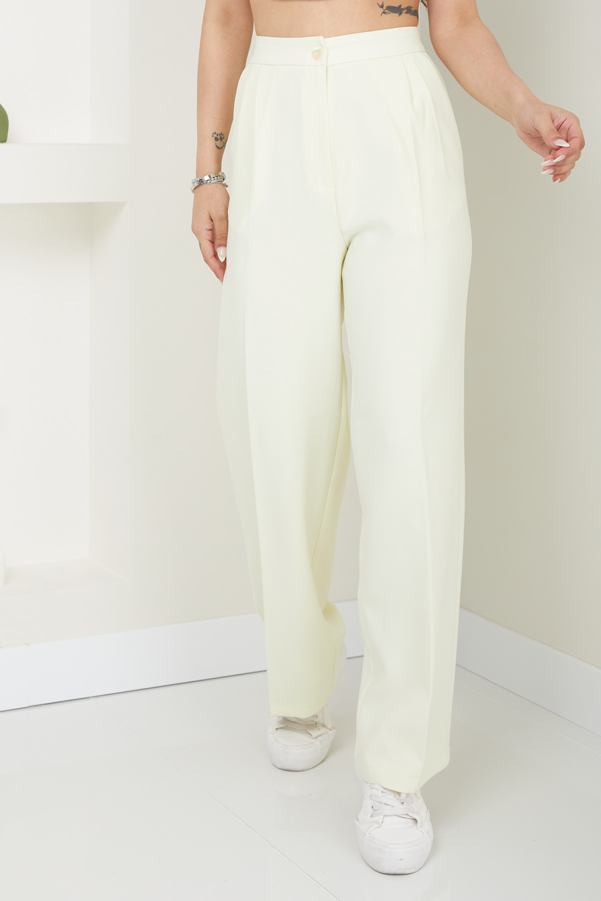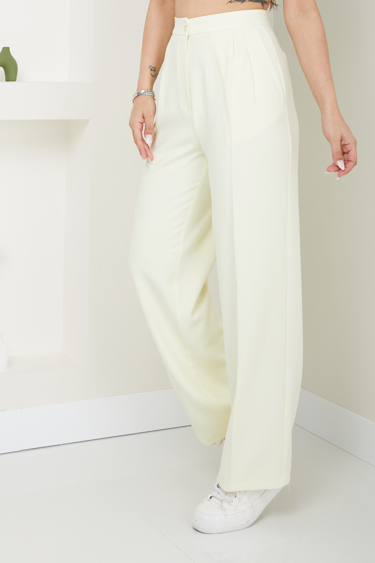 Ana SayfaMağazaPANTOLON Kadın Yüksek Bel Palazzo Pantolon Açık Sarı 4000