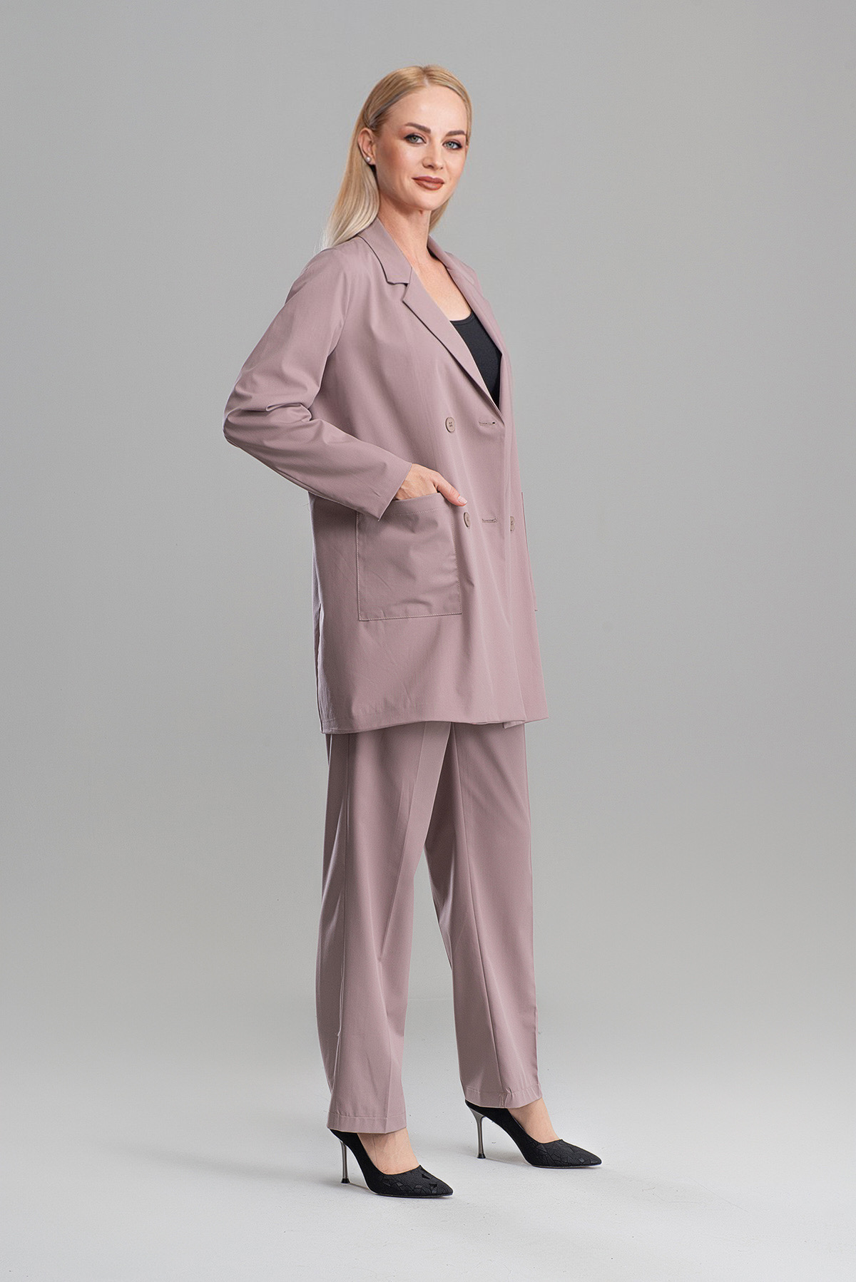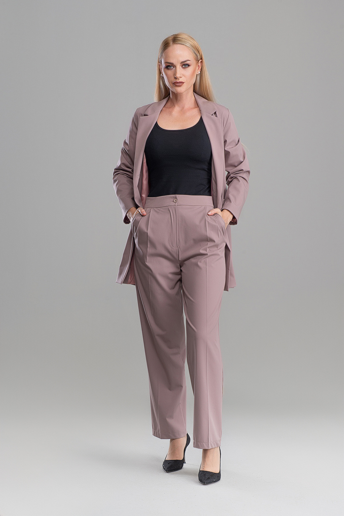 Kadın Yüksek Bel Palazzo Pantolon Gülkurusu 4000