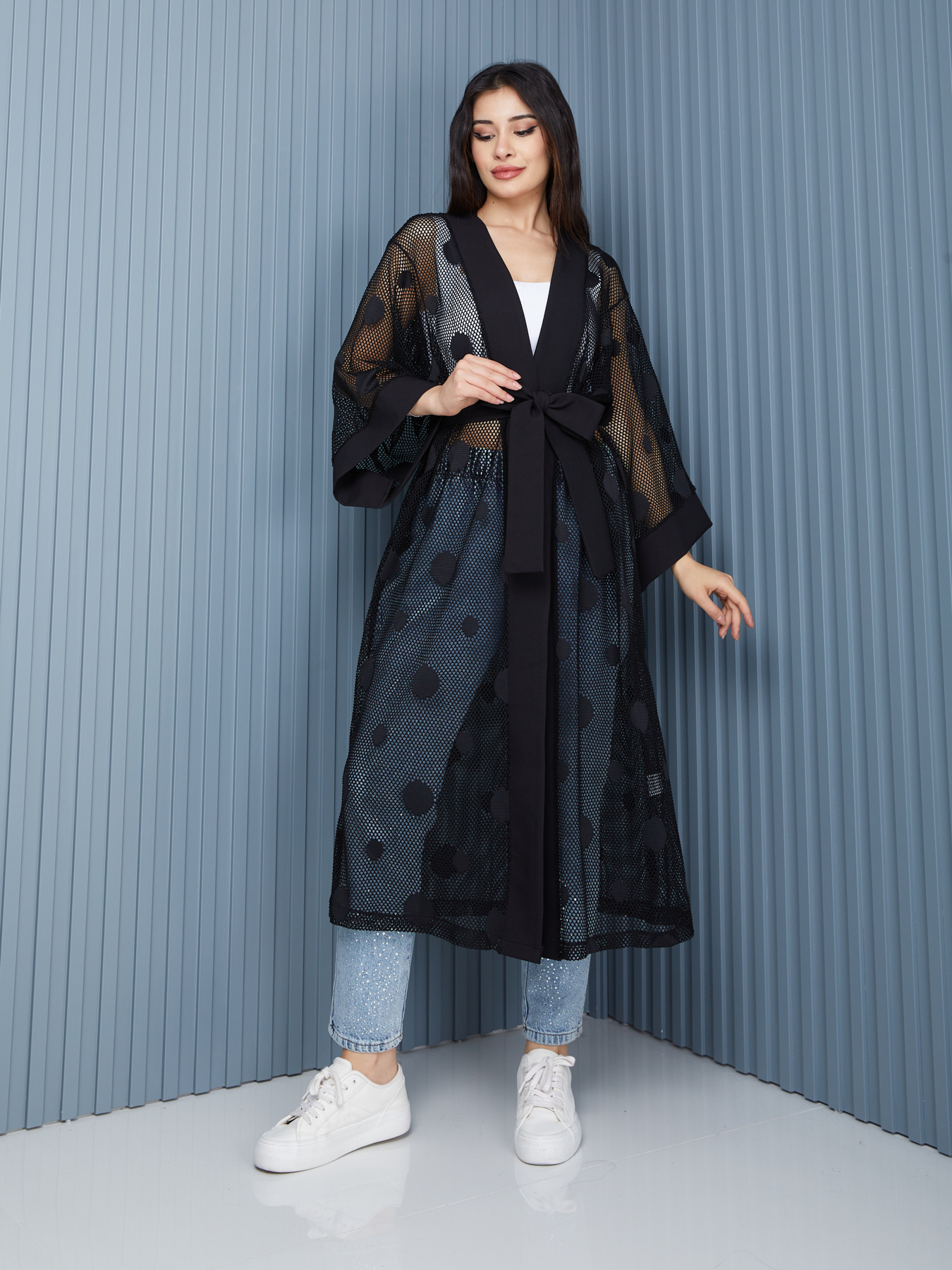 Ana SayfaMağazaÜST GİYİMKİMONO Kadın Uzun File/Dantel Kimono Siyah File 10001